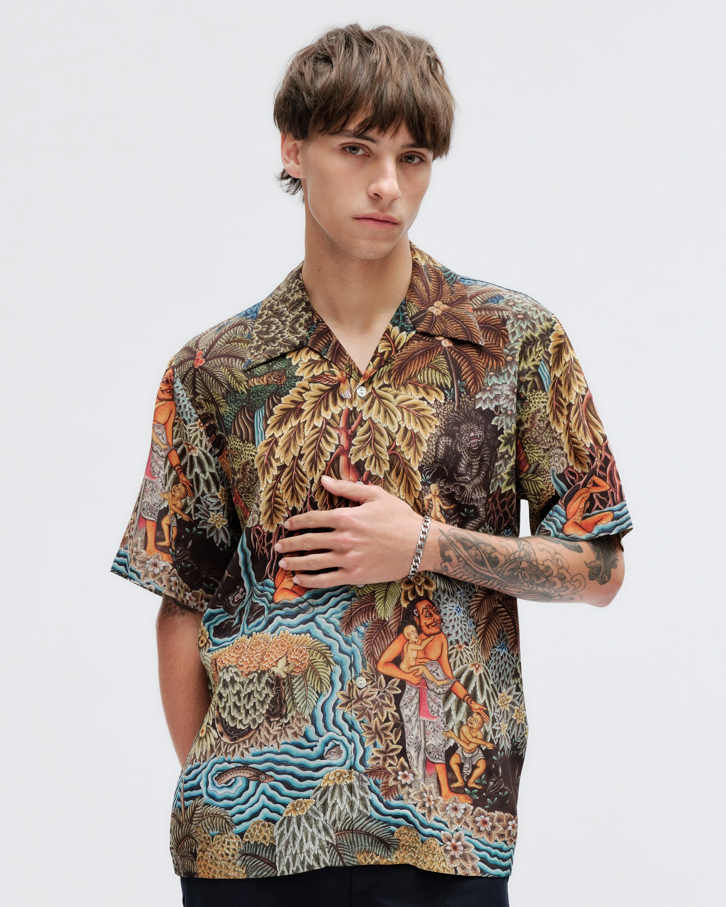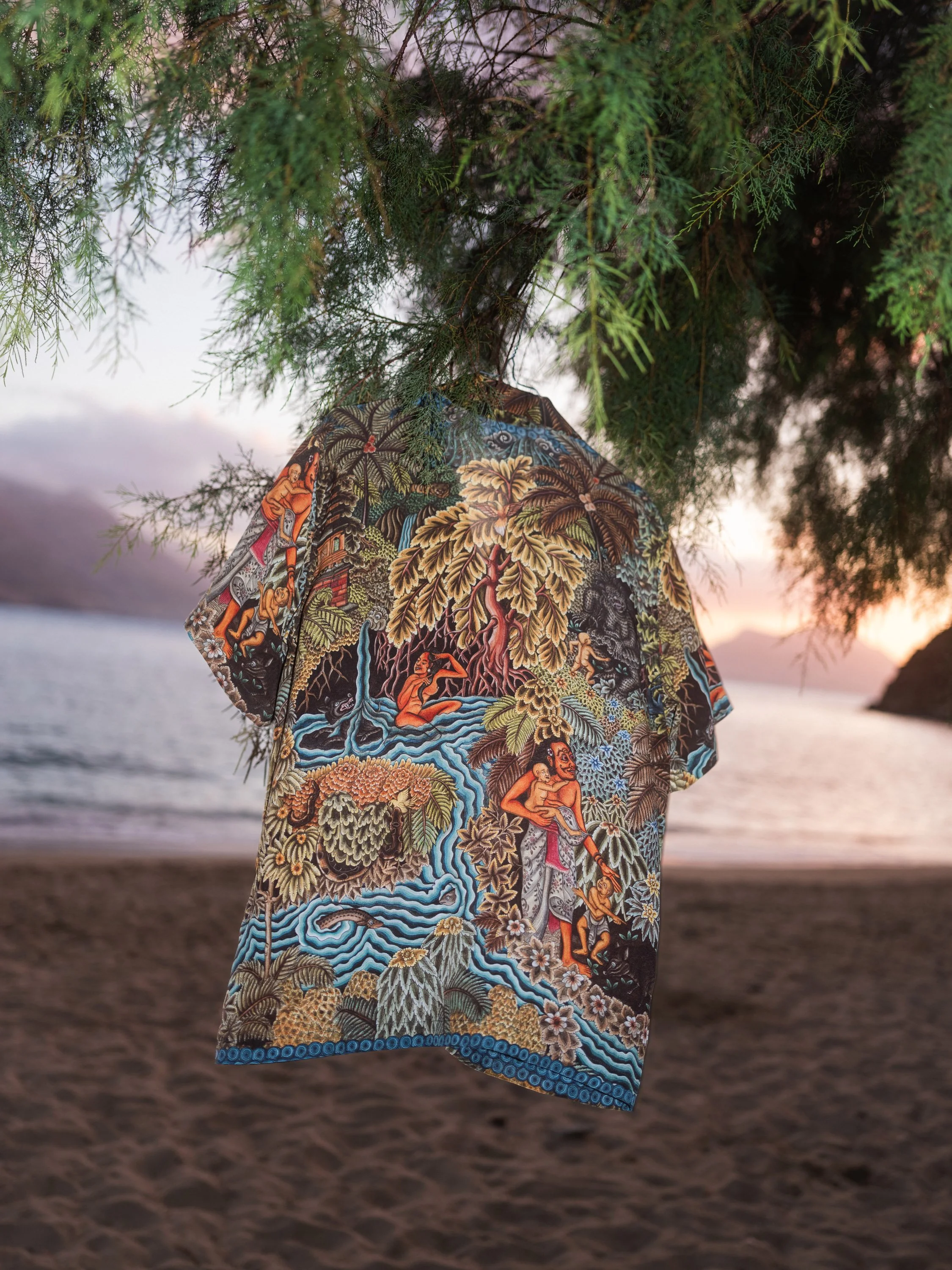 Every shirt and garment is made entirely by human hands. From sewing to printing, each piece begins with the artwork itself — a painting that takes months to complete — before being carefully translated onto fabric.